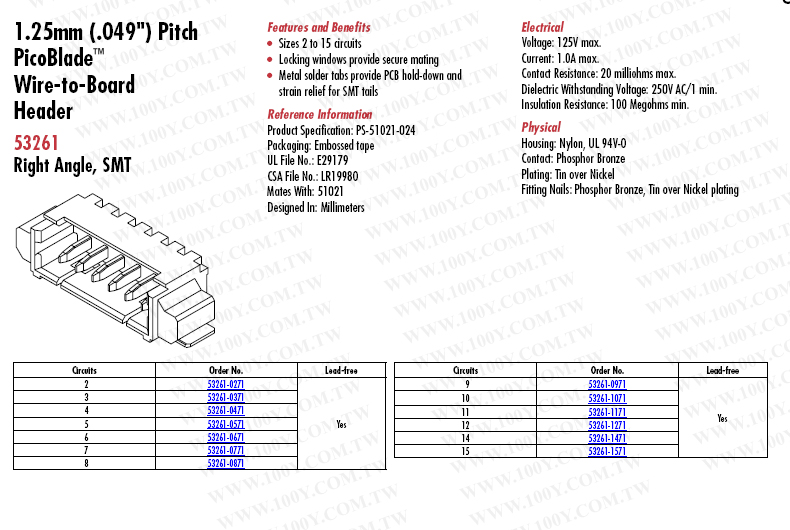 MOLEX_連接器53261系列 Pitch:1.25mm 8P