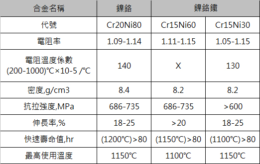 ●高的電阻率和低的電阻溫度係數。