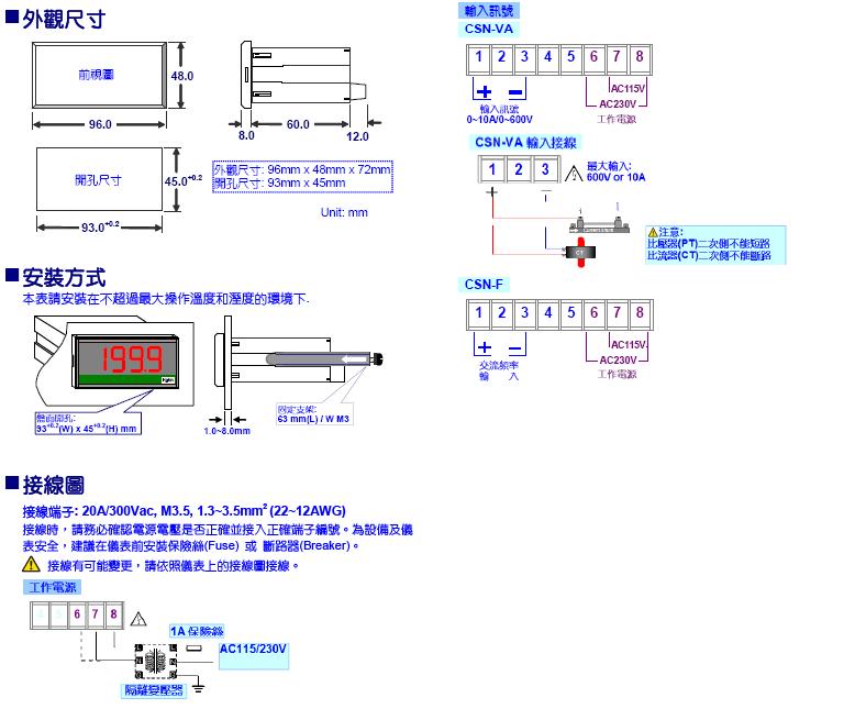 CSN系列為一經濟簡單型顯示表,其具備20.0mm大LED顯示及其抗干擾設計,品質可靠,安裝操作簡單