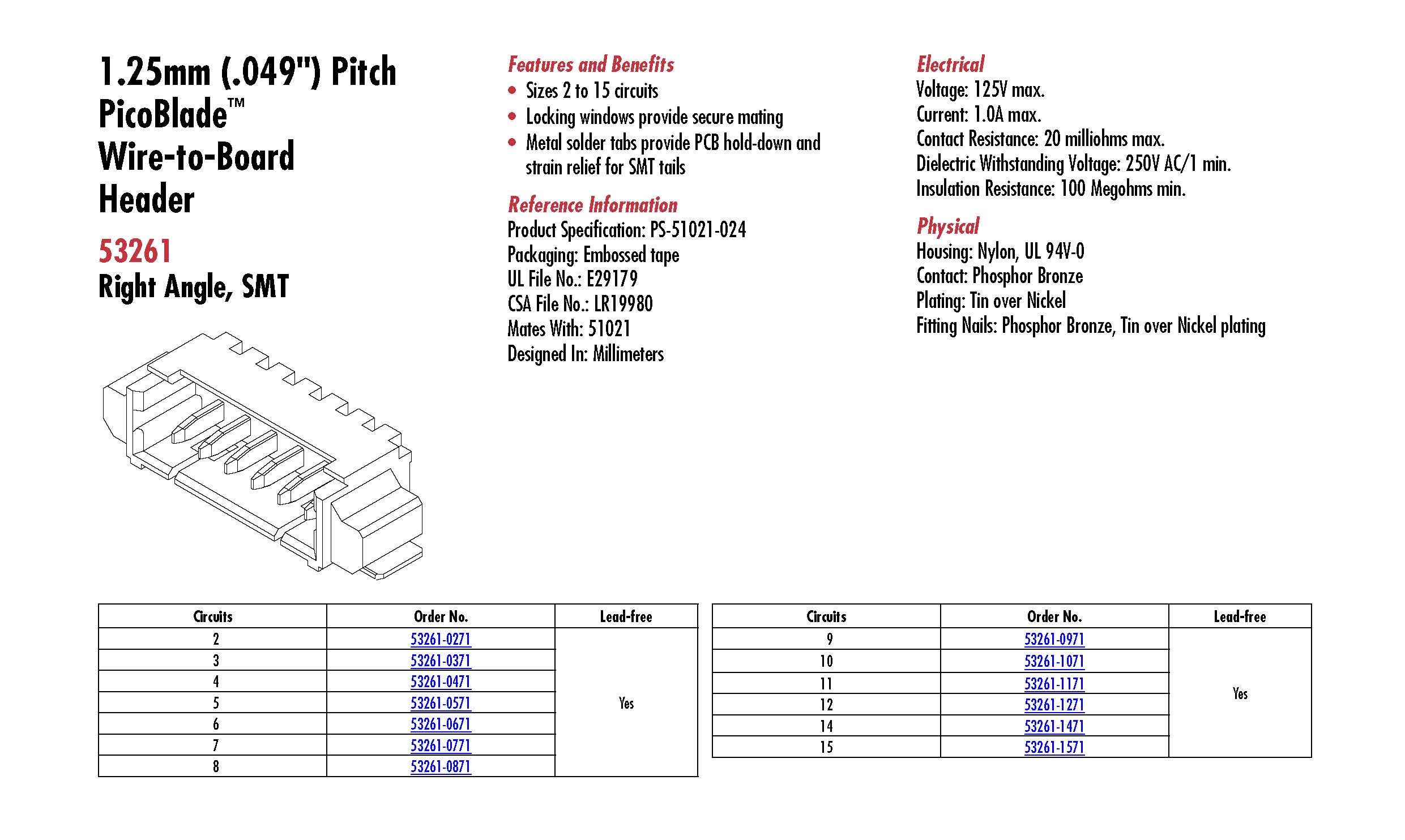 連接器 P:1.25mm 10P SMT_Molex【ROHS】
