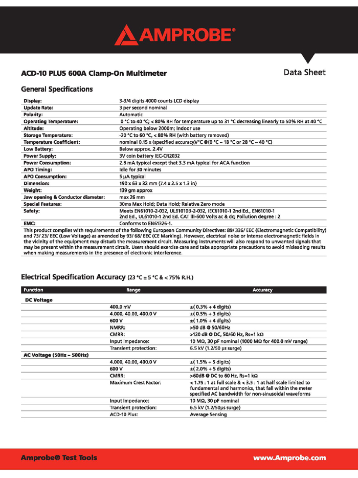 ACD-10/PLUS AMPROBE_鉗型錶 產品規格