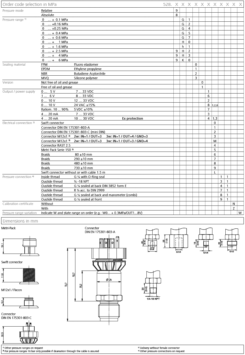 The compact type 528 pressure transmitter is based upon the Huba Control developed and since over 20 years well proven ceramic technology. These transmitters are suitable for applications across a broad spectrum of industries.