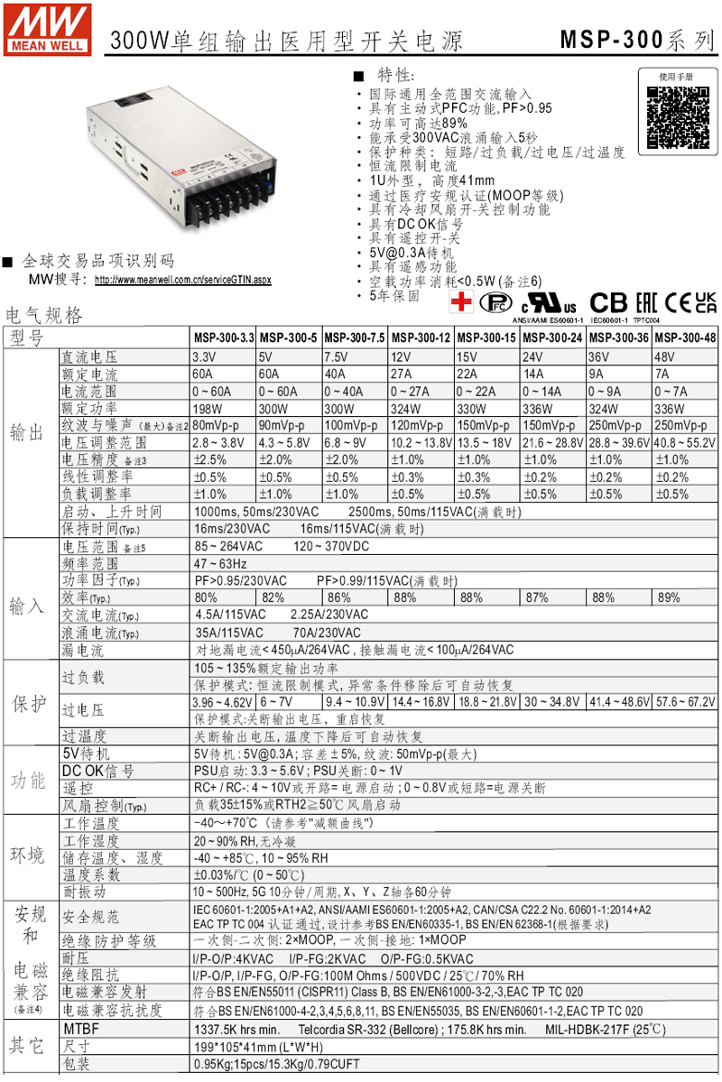 MW_MSP-300 系列 電源供應器
