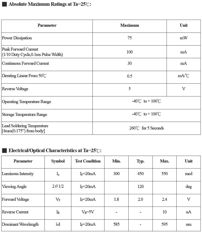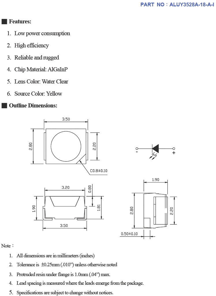 3528(1210) SMD LED 2V 黃光【ROHS】