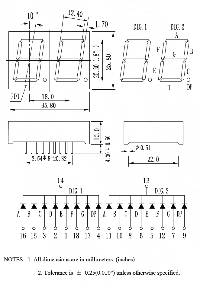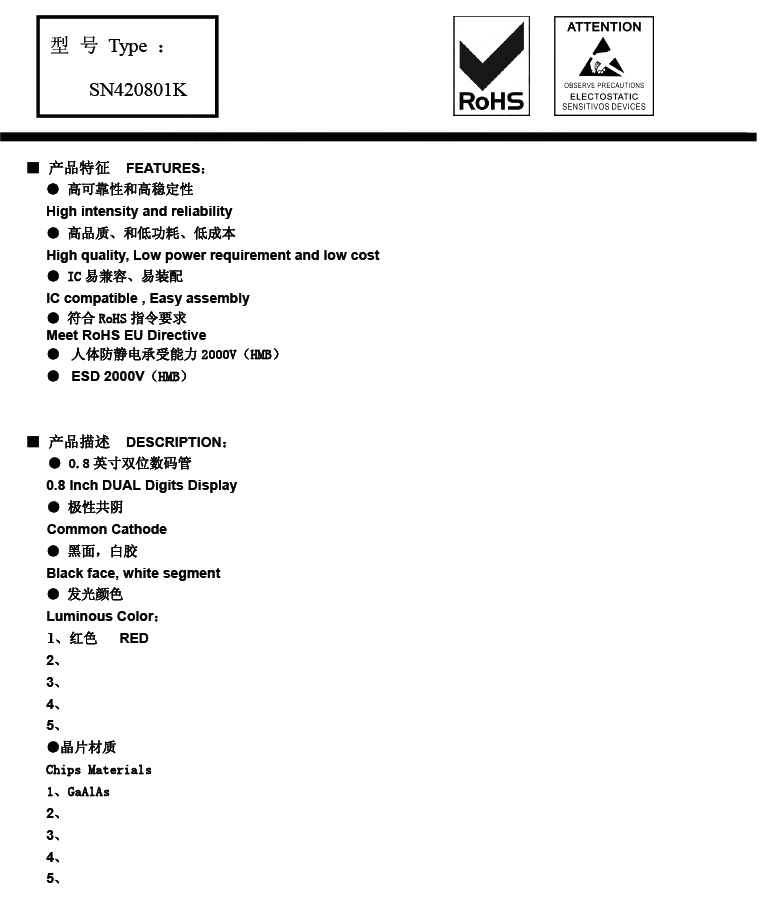 0.8" 2字七段顯示器/共陰/高亮紅色