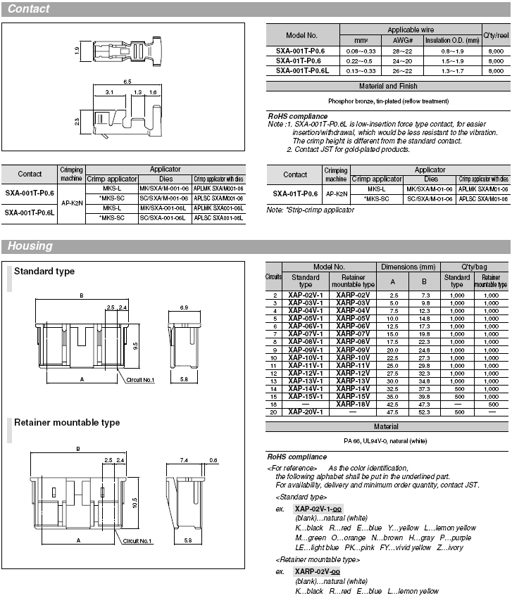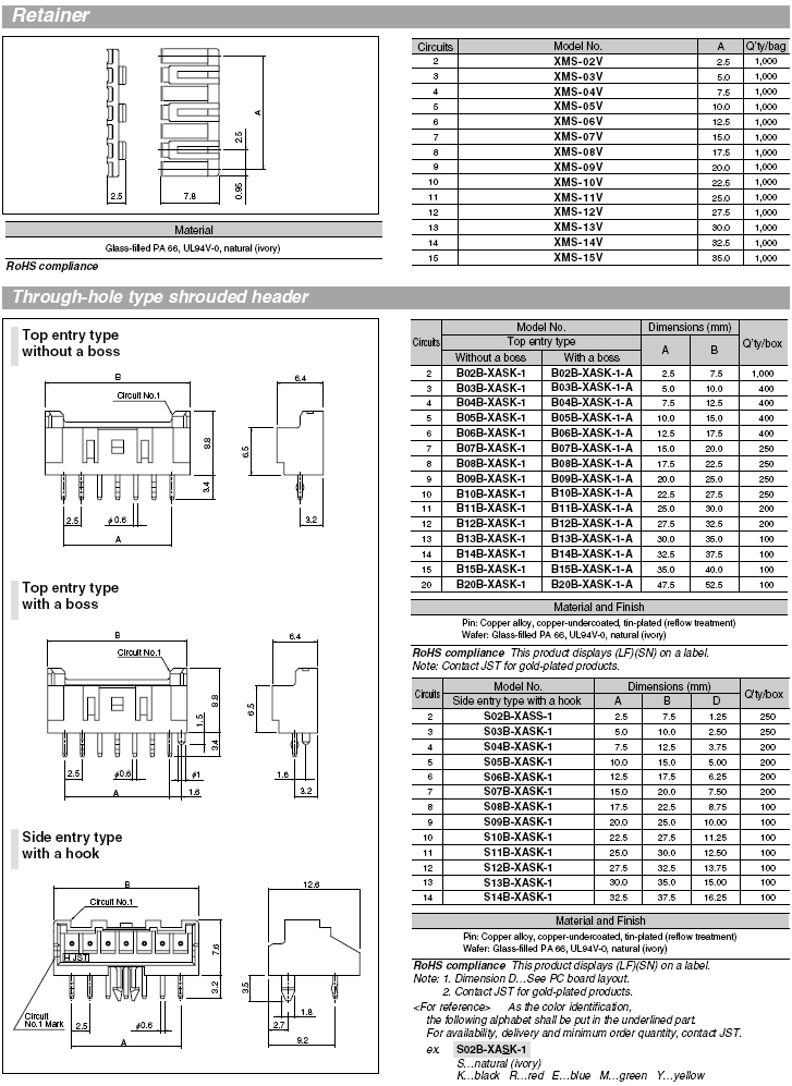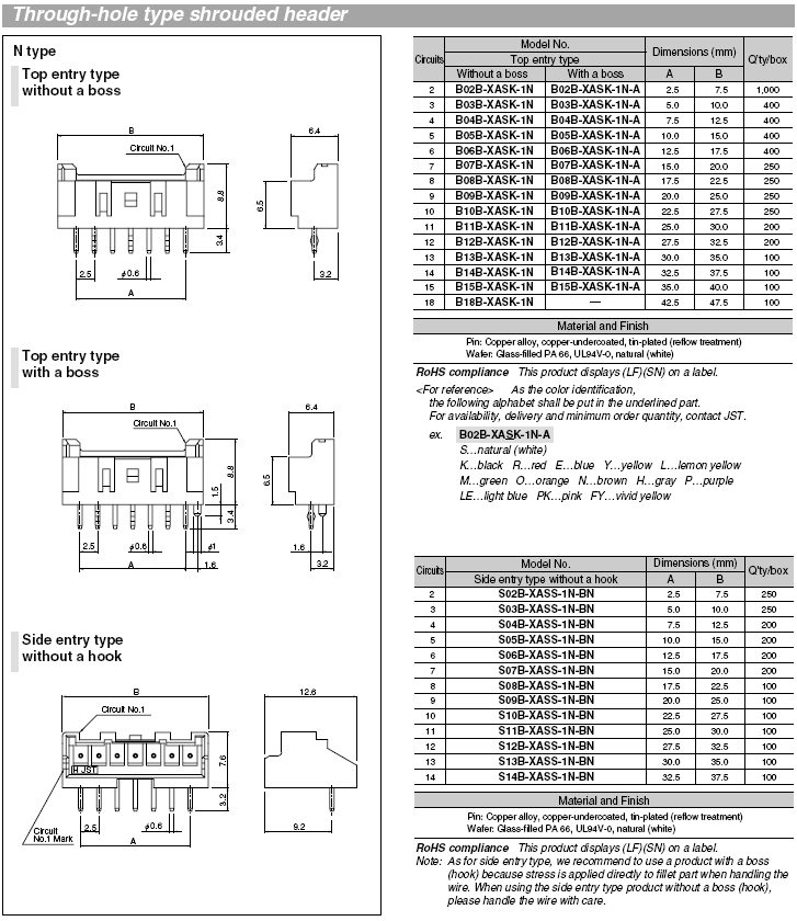JST-XA-2.5mm- 6P公頭