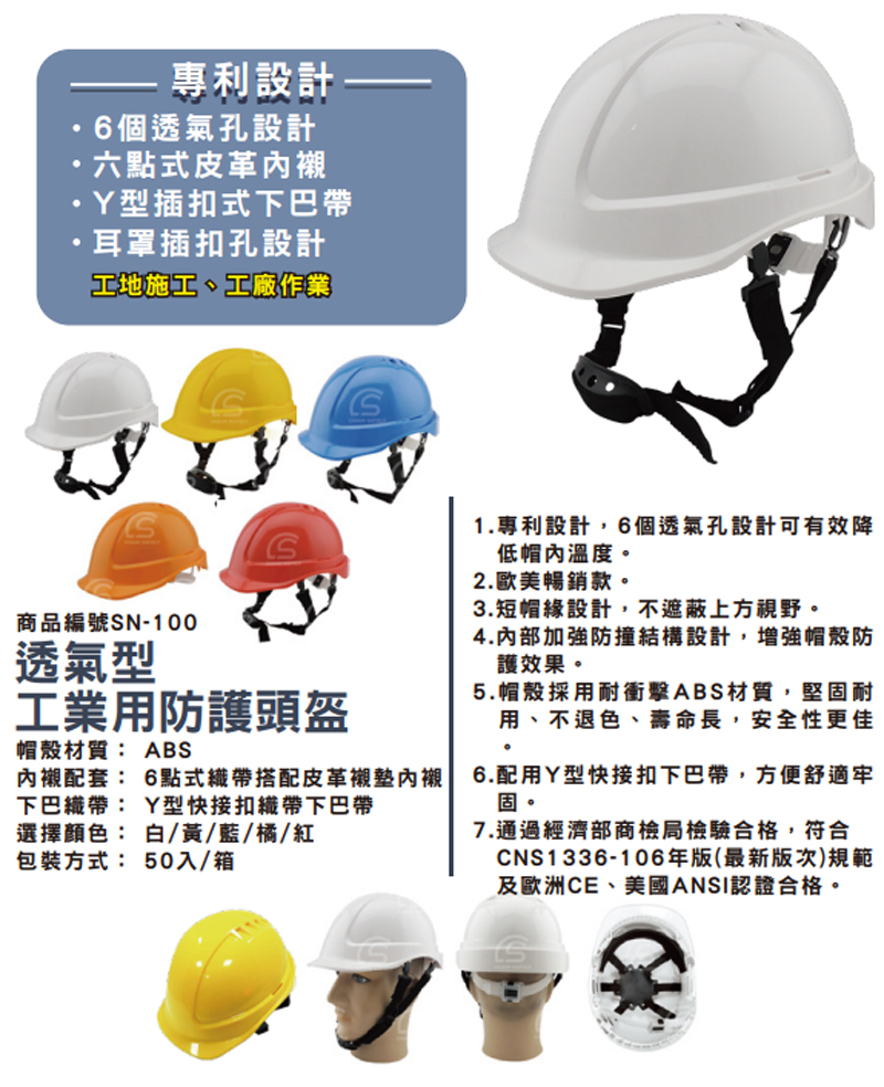 透氣型工業用防護頭盔 (黃/白/藍/橘/隨機出貨)