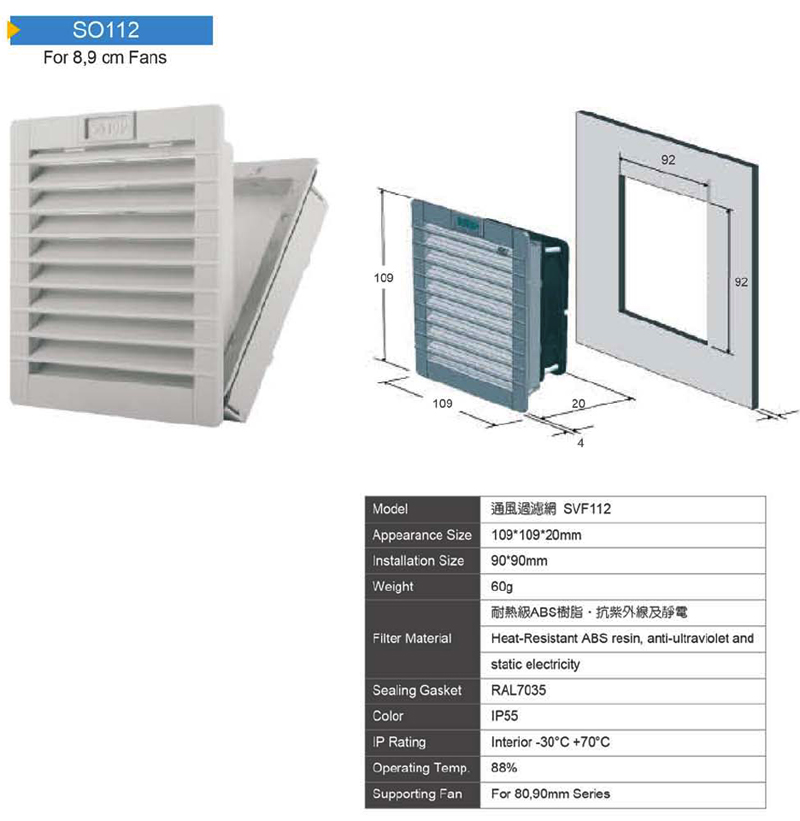 百葉型通風過濾網 109*109*20mm