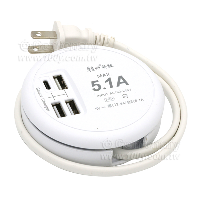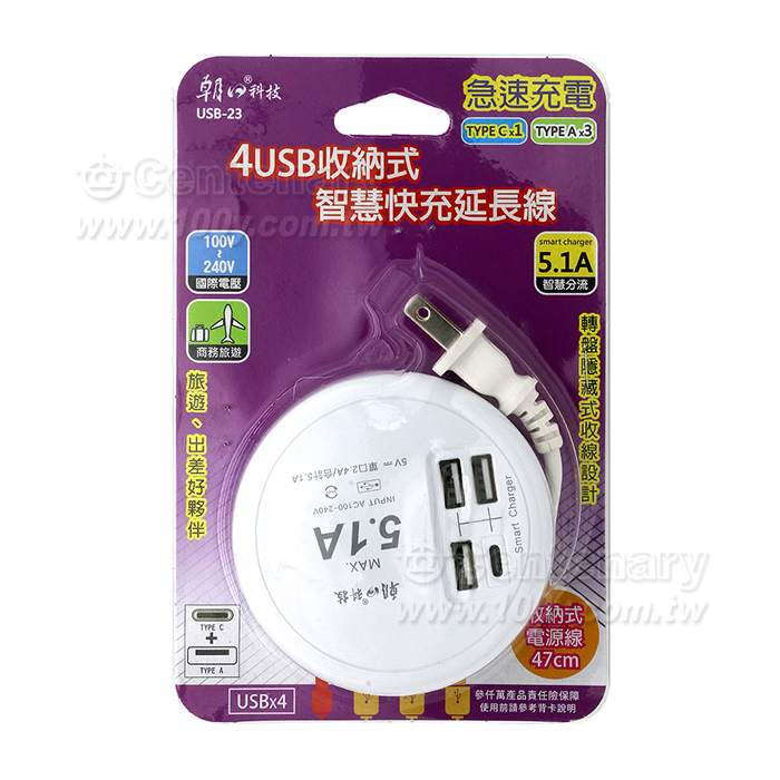 4USB收納式智慧快充延長線