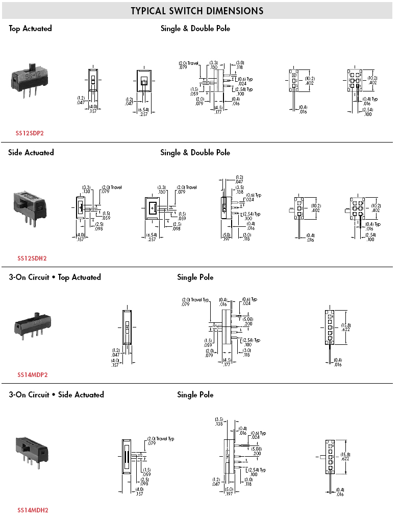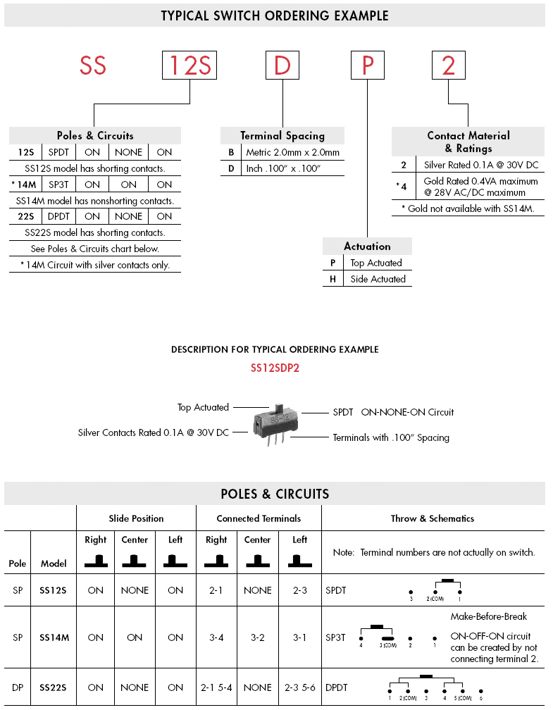 180° 滑動開關 SS12SDP2(ON-None-ON 3P2)