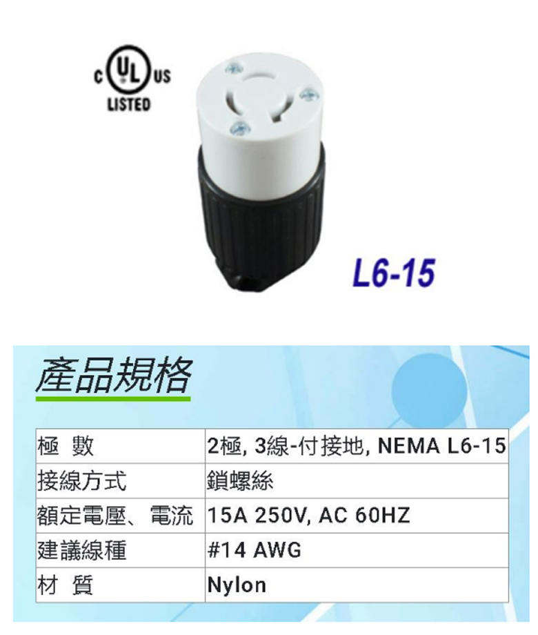 L6-15R 引掛式中間插座