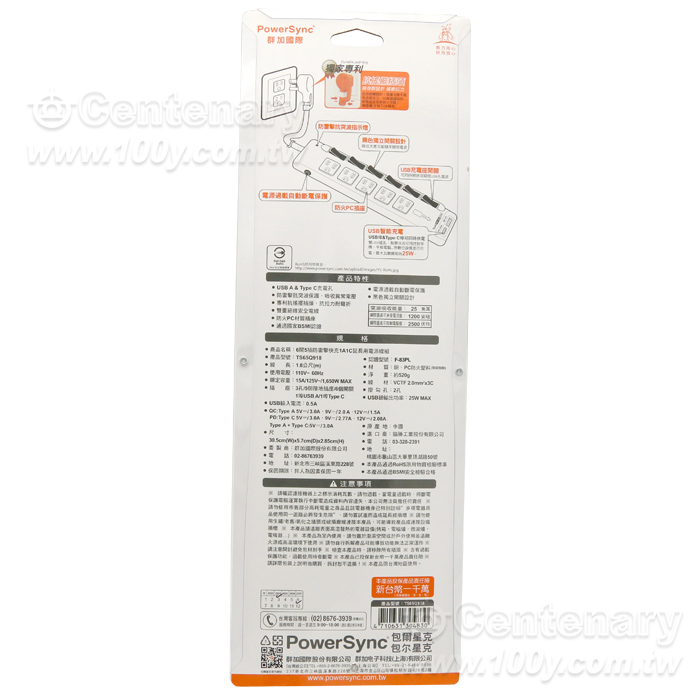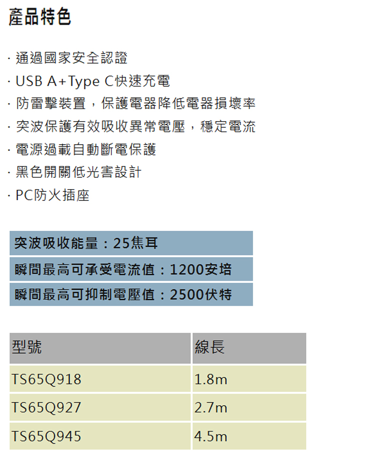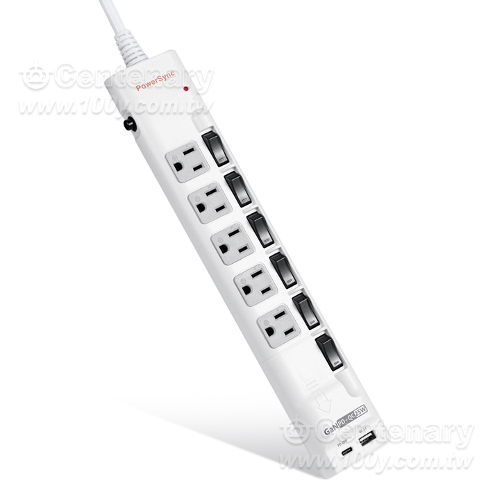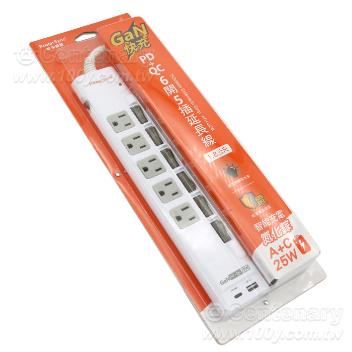 6開5插GaN快充防雷擊延長線 白色1.8M