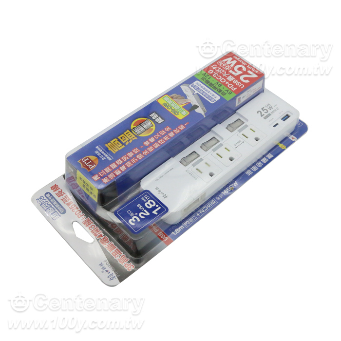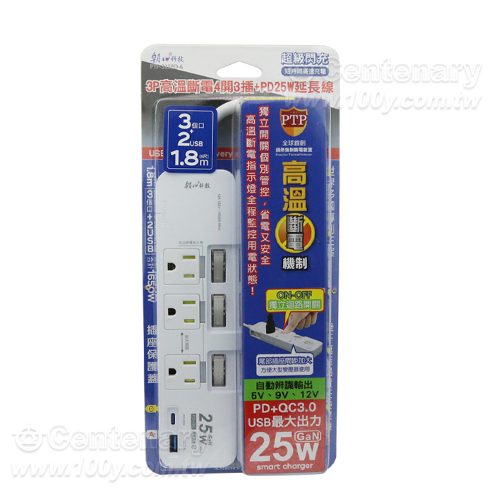 3P高溫斷電4開3插+PD25W延長線 1.8M