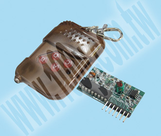 工作電壓為 DC5V,接收靈敏度為-98db。有7 個腳位,分別是VT(輸出狀態指示)、D3(資料輸出)、D2(資料輸出)、D1(資料輸出)、D0(資料輸出)、+5V(電源正極)、GND、ANT(接收天線)VT 是有效信號高電平輸出腳,一旦接收到有效信號,該腳輸出高電平,也可驅動繼電器。