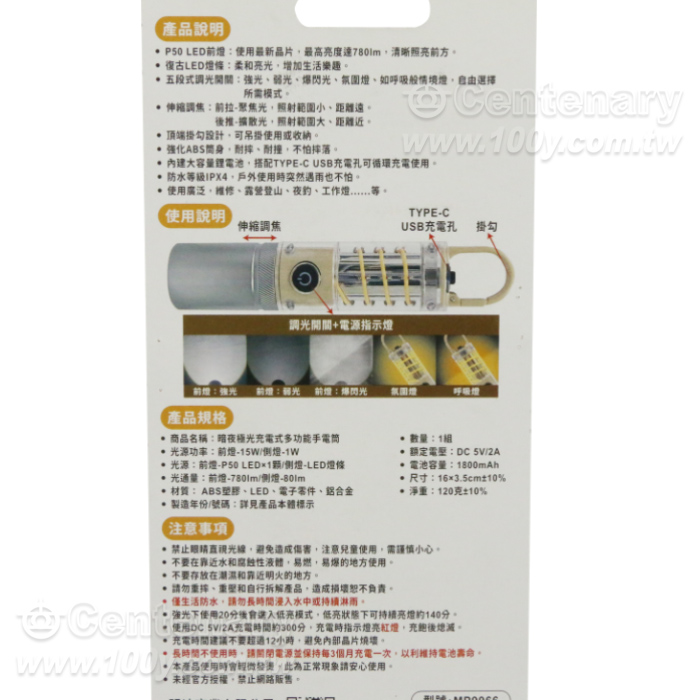 暗夜極光充電式多功能手電筒