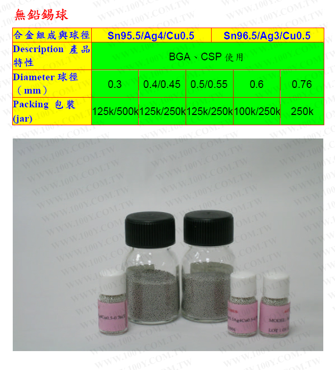 無鉛錫球-96.5/3/0.5-0.25mm-250K/瓶