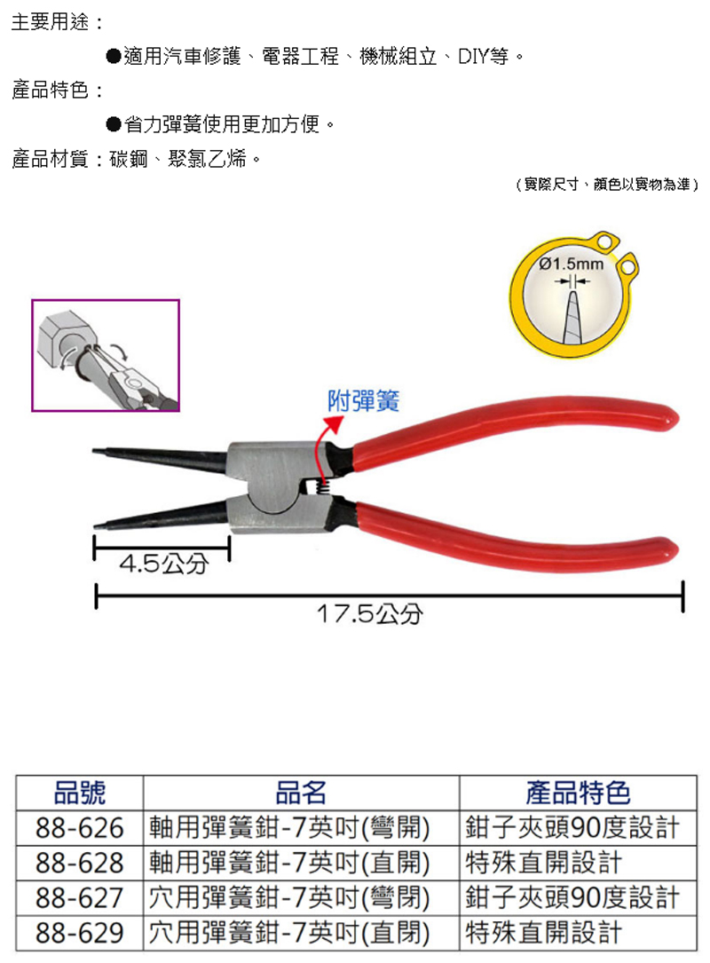 軸用彈簧鉗 7" (直開)