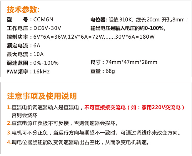 PWM 直流電機調速器6~30V/10A