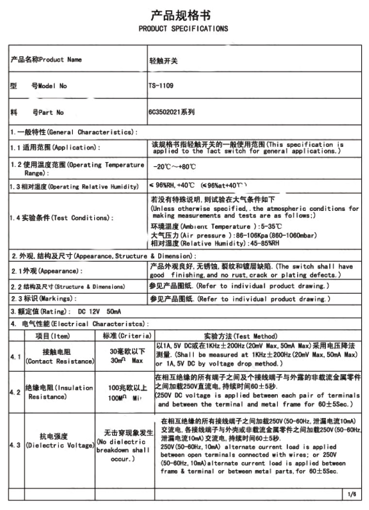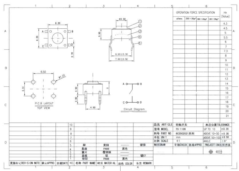 輕觸開關,6.2*6.2*8.0mm 無鉛