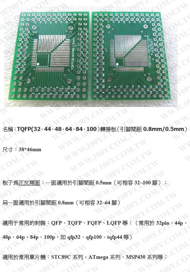 TQFP32-100-0.5+TQFP32-64-0.8-DIP-轉接板