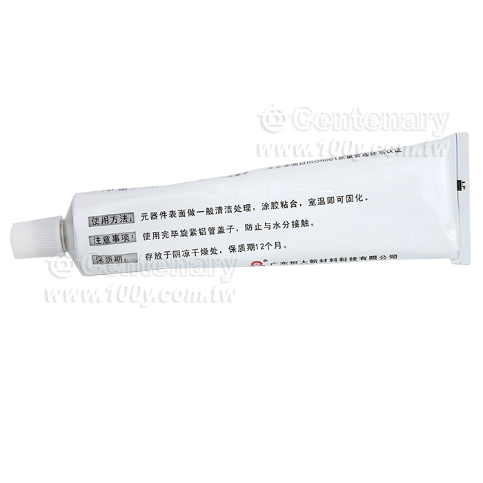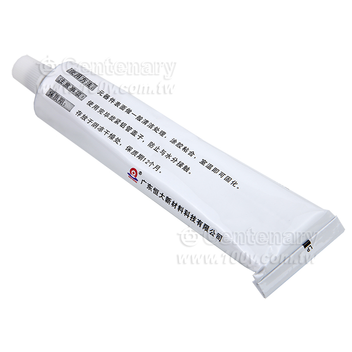 元器件作一般清潔處理後,切開管口套上的尖嘴,擠出膠體,塗膠粘合。在室溫25℃,濕度50%的環境下,24 小時固化深度為2—3 毫米。如膠合面積大、膠層厚則固化時間更長,室溫下放置時間越長粘合效果越好。如耐溫元器件可在膠層徹底固化後置於50℃~150℃間任一溫度內烘4~12 小時,可達更好的強度和粘合效果。