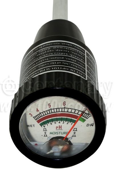 3. 將檢測儀垂直插入待檢測土壤中,確保電極完全與周圍土壤貼合。大約10分鐘後檢測儀將顯示正確的PH值和濕度。檢測儀有時會顯示不同的數值,這取決於土壤條件、檢測儀的金屬表面粘著力、濕度條件等,因此,可多測量幾次取平均值為好
