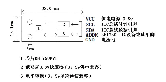 光照度範圍:0-65535 lx感測器內置 16bitAD 轉換器直接數字輸出,省略複雜的計算,省略標定不區分環境光源