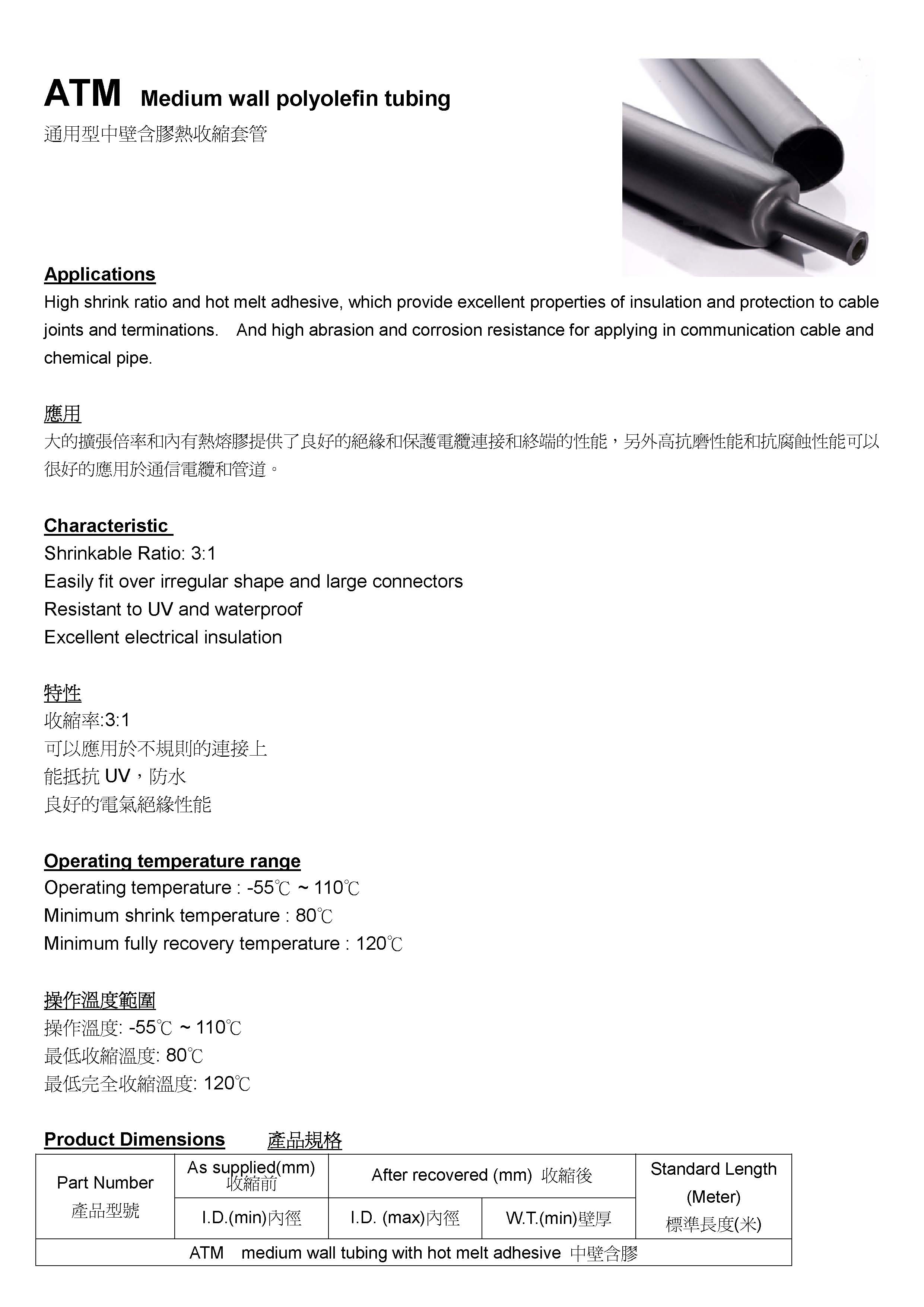ATM中壁含膠熱收縮套管 12~3mm