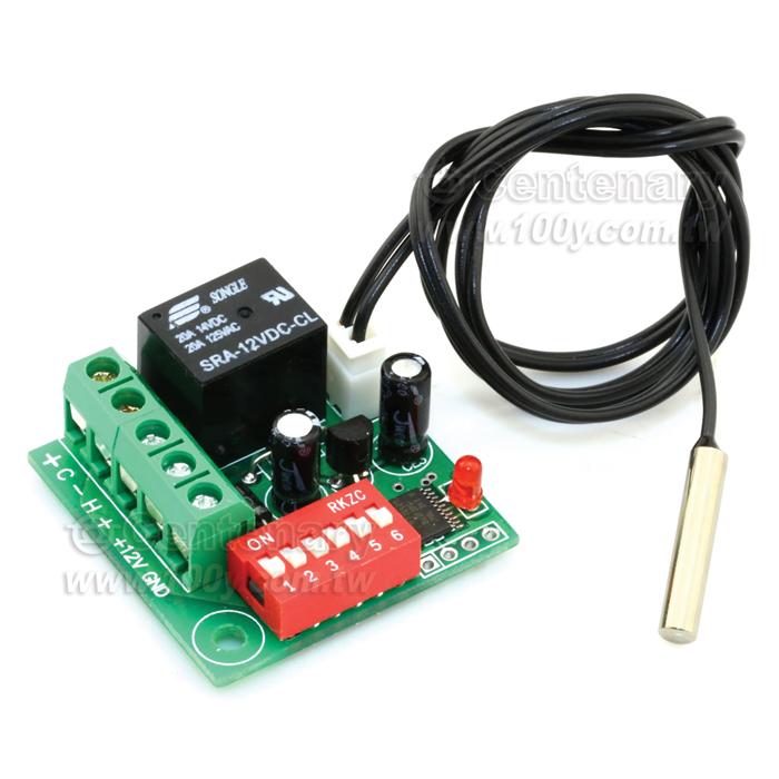本產品採用STM8 高速專業溫控晶片,設定控溫和回差採用二進位撥碼開關,具有體積 小,安裝方便,精度控溫,回差可調等優點,相比專業溫控器雖然沒有顯示幕和調溫按鍵但 控制精度和專業的無差異,且價格僅幾分之一,性價比極高,本產品完全可用在(液體、模 具、空間)等控制加熱,也可用於(箱體、器件、水、寵物房、空調)等控制製冷當然用在 散熱場合更多比如,控制主機殼、大棚、伺服器散熱,設定高於多少度啟動低於多少度停止。 智慧、專業、專注、進取是我們永遠追求的目標,歡迎在使用過程中提出寶貴意見和建議, 我們力爭做的更好! 根據自己的需求按圖紙連接好電路,供電為DC12V (+12V 為正 GND 為負) 被溫控探頭放置在需要控溫的物體上 用於加熱:請把 12V 加熱器接在-H+(注意正負極) 用於製冷:請把製冷器接在+C-(注意正負極) 用於散熱:請把製冷器或者散熱風扇接在+C-(注意正負極)