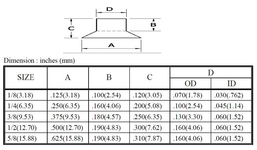 Available Cup size: 3/32” 1/8” 1/4” 3/8” 1/2” 5/8”