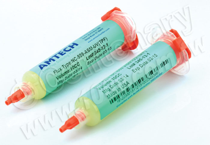 AMTECH 型號 RMA-223,NC-559 類型 NC 適用範圍 BGA返修,手機維修 一.美國AMTECH助焊膏(NC-559和RMA-223) 二.產品介紹: 美國AMTECH研發了兩種使用於手機PCB,BGA及PGA等SMD之返修助焊膏,它使用於低離子性之活化劑系統,潤錫速度快,冒煙程度很低,殘留物固化後之表面絕緣阻抗值很高,因此,對手機等通訊產品之電性干擾非常小. 三.產品性能: 1.RMA-223為中度活性之松香型助焊膏,廣泛使用手機板之SMD返修工藝。 2.NC-559為免洗型助焊膏,殘留物顏色非常淡,有極高之SIR值,建議用於BGA、CSP等球陣焊點返修及補球。 四.包裝方式: 100克/瓶及10ml/支