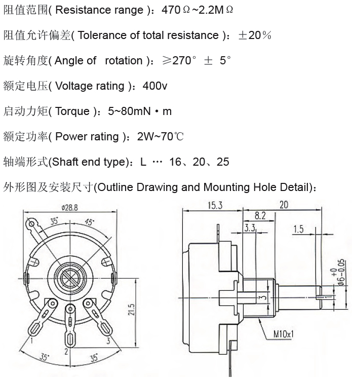 560Kohm碳膜電位器, ±20%